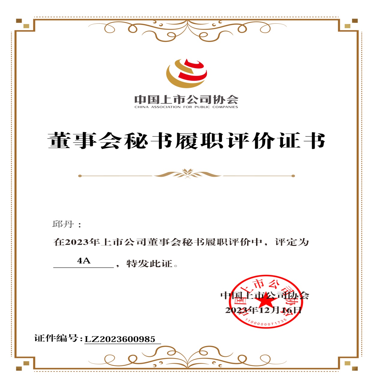 繼淮北礦業榮獲中國上市公司協會“2023年上市公司董事會優秀實踐案例”后,近日中國上市公司協會“2023上市公司董事會秘書履職評價”“2023上市公司董辦最佳實踐創建活動”結果先后發布,淮北礦業集團黨委常委,淮北礦業副總經理、董事會秘書邱丹連續兩年榮獲董事會秘書履職4A評級,證券投資部首次榮獲董辦優秀實踐案例。