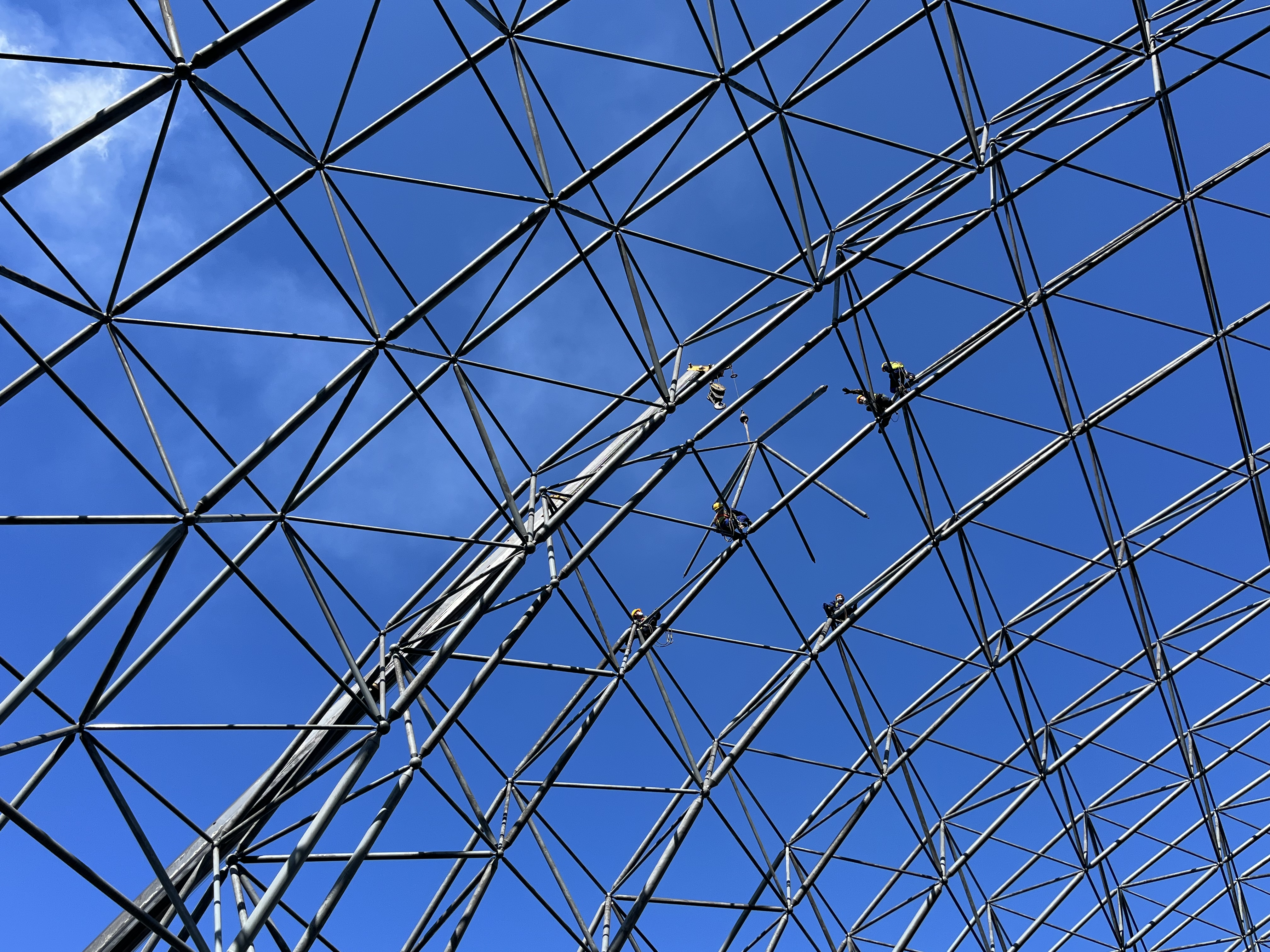 中煤集團伊犁公司安裝卸煤溝煤棚網架,以解決作業中的揚塵污染問題